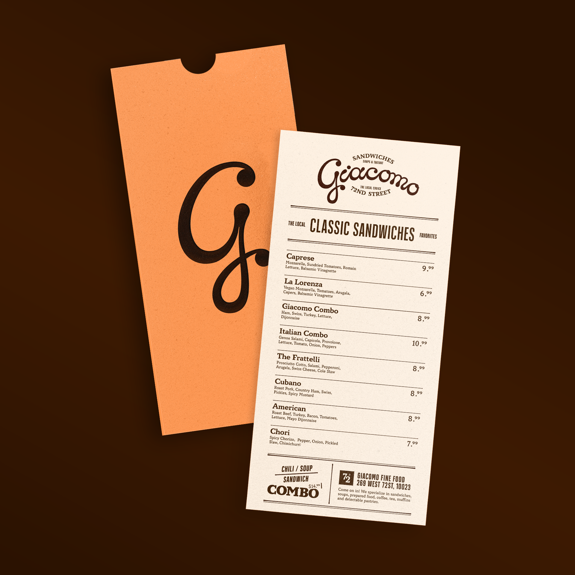 Giacomo is known for its friendly, humble no-frills atmosphere and affordable sandwiches and food items. With this project, I wanted to create a cohesive, elevated identity that feels as warm and eclectic, but also artisanal with some subtle Italian flare.